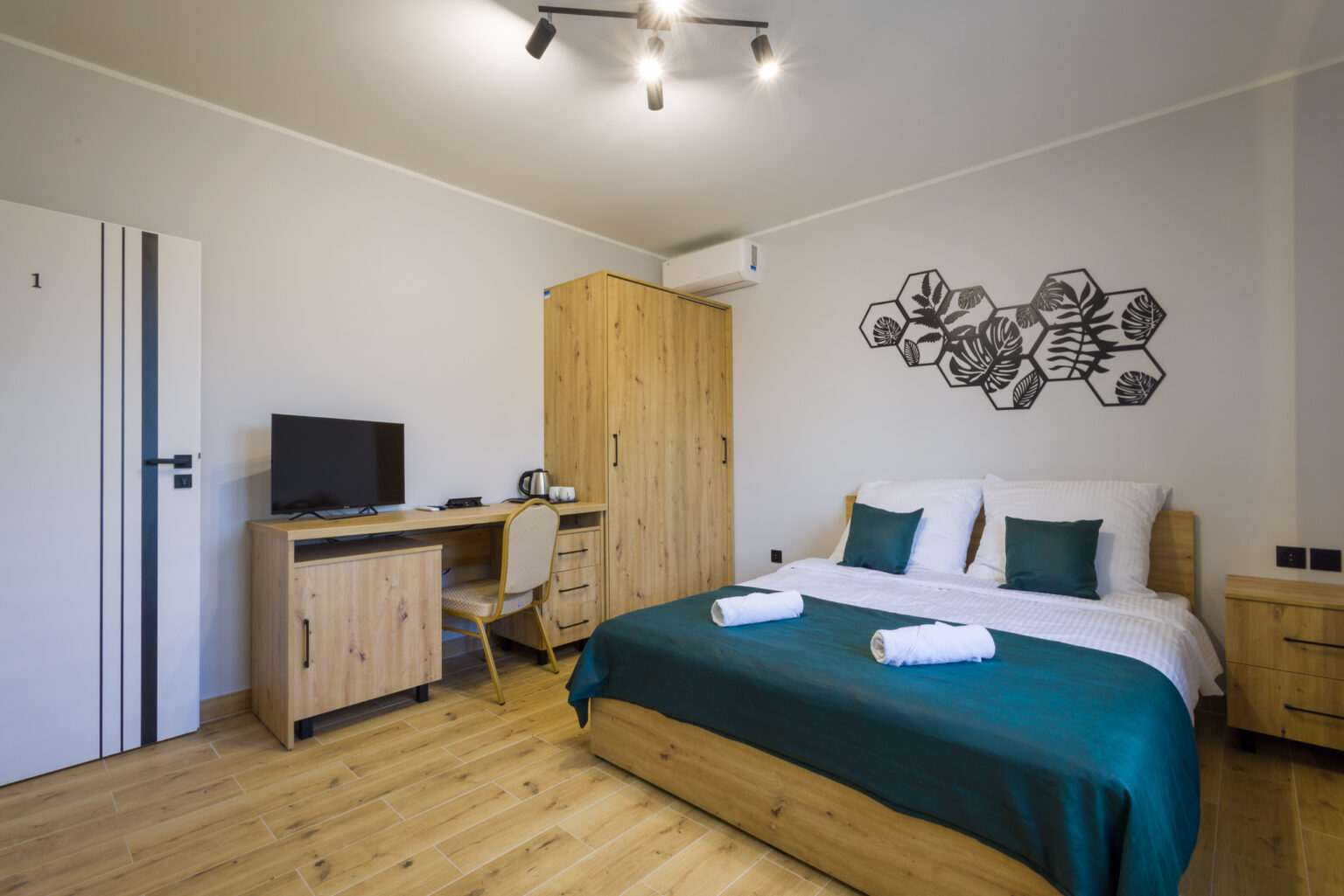 W naszym Pokoju Dwuosobowym LUX znajdziesz wszystko, co niezbędne, by Twój pobyt był niezapomniany: